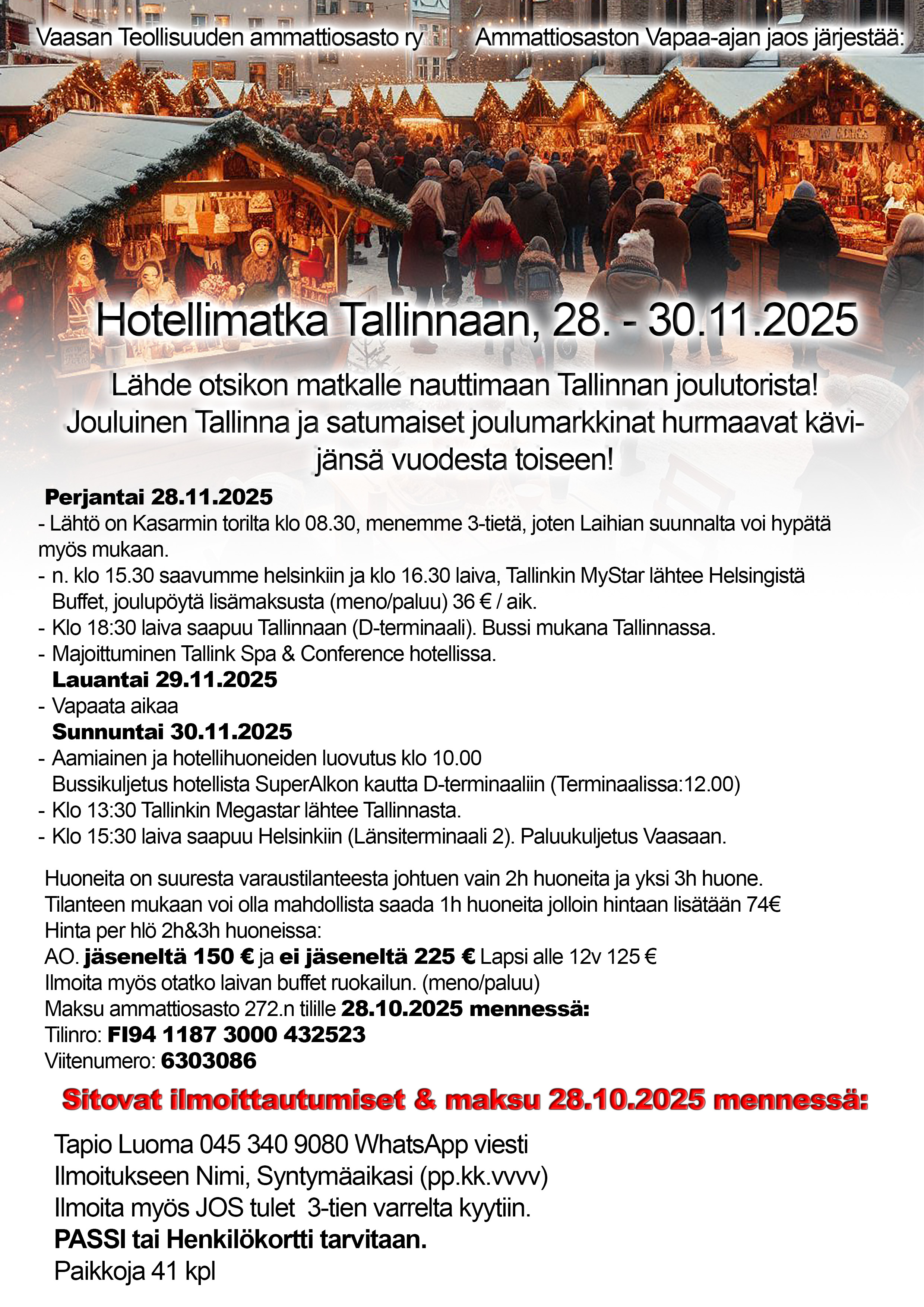 Lähde mukaan suositulle Tallinnan joulutori matkalle!